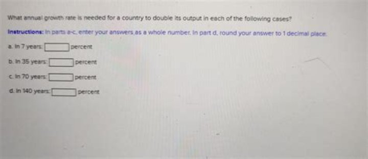The annual growth rate needed for a country to double its output in 28 years is 2.5 percent (= 70/28).