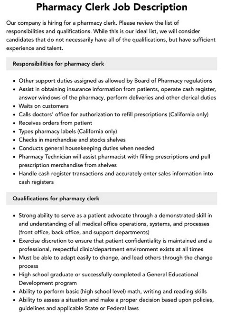 What’s the job description of a pharmacy clerk?