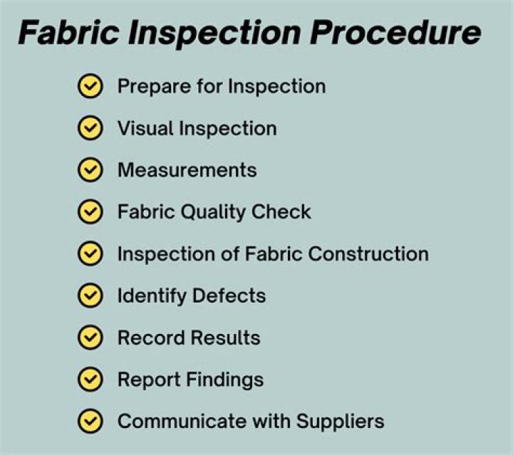 The process is done following a specific SOP to check the specific items. Four-Point System: Most used method in garment industry for fabric inspection which is performed following ASTM D5430-93 ( Standard Test Methods for Visually Inspecting and Grading Fabrics ).